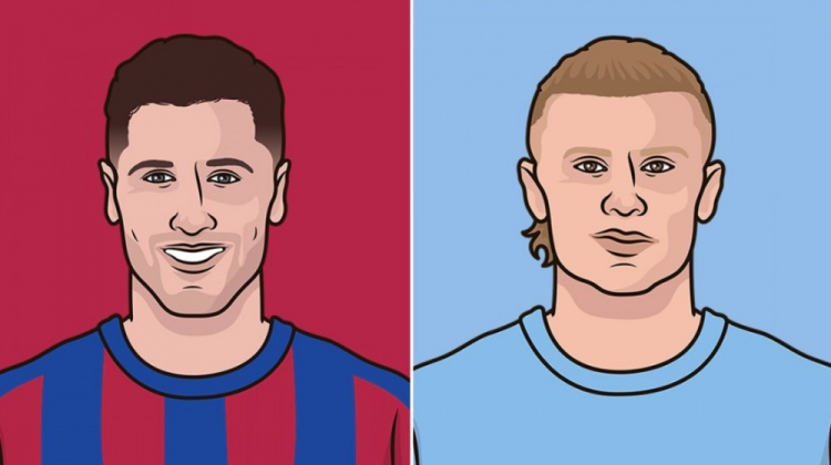 Kể từ mùa giải 2019-20, Lewandowski đã ghi được 52 bàn thắng tại Champions League và xếp hạng đầu tiên; Haaland đứng thứ hai với 50 bàn thắng.